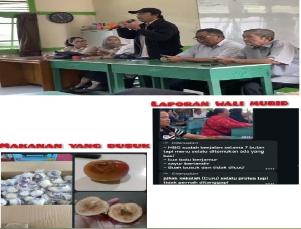 “Program MBG ini sudah berjalan sekitar tujuh bulan, tapi kami sering menemukan makanan yang basi. Ada kue bolu berjamur, sayurnya berlendir, dan buahnya busuk bahkan tidak dicuci,” ungkapnya kepada awak media sambil menunjukkan foto dan rekaman video.