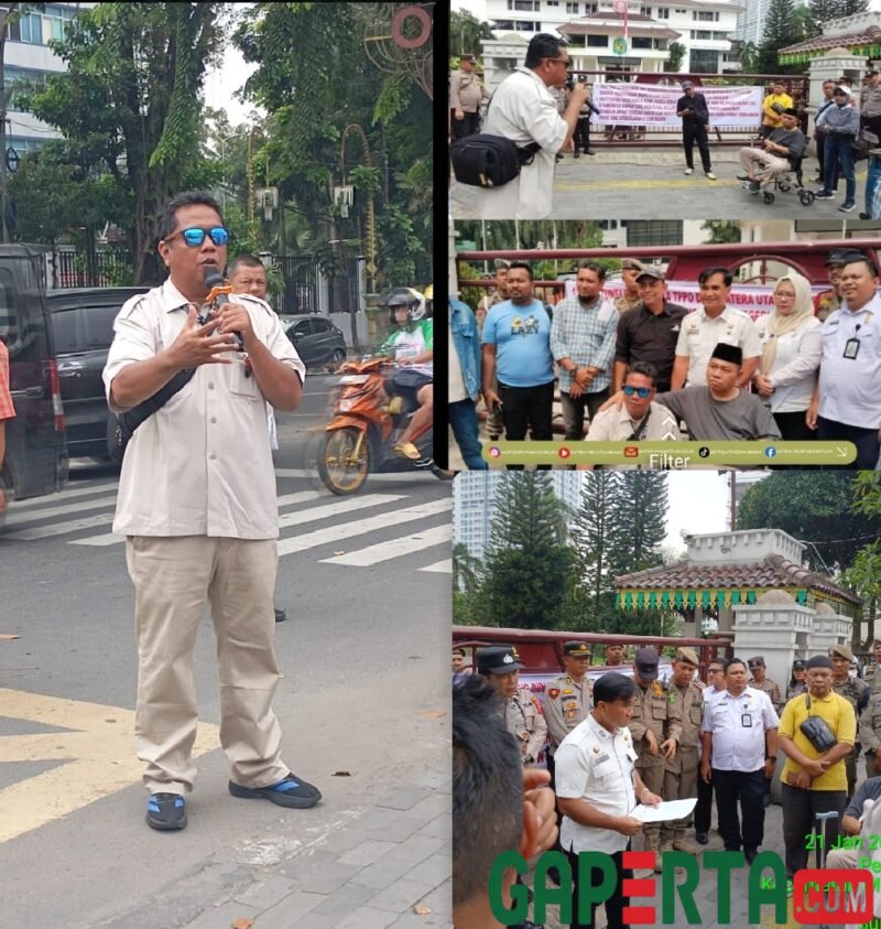 Medan – Sejumlah massa yang tergabung dalam Aliansi Masyarakat Peduli Korban Tindak Pidana Perdagangan Orang (AMPK TPPO) menggelar aksi di depan Balai Kota Medan, Jalan Kapten Maulana Lubis, Rabu, 21 Januari 2026.