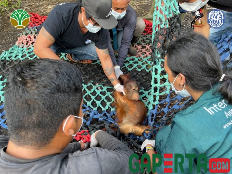 Ketapang, Kalbar. — Balai Konservasi Sumber Daya Alam (BKSDA) Kalimantan Barat Seksi Konservasi Sumber Daya Alam Wilayah Ketapang bersama Yayasan Inisiasi Alam Rehabilitasi Indonesia (YIARI) menyelamatkan satu bayi orangutan betina yang ditemukan tanpa induk di kebun sawit milik warga di Desa Sungai Besar, Kecamatan Matan Hilir Selatan, Kabupaten Ketapang, Kalimantan Barat.