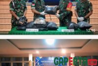 Sintang – Danrem 121/Abw Brigjen TNI Purnomosidi, S.I.P., M.A.P., M.Han., Selaku Dankolakops Rem 121/Abw menerima hasil operasi penggagalan penyelundupan 10 paket Kanabis/Ganja sebanyak (12,290…