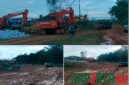 Sangat ironis, di lokasi tersebut terlihat jelas beberapa unit alat berat terparkir dan menganggur, namun jalan yang berada tepat di depan lokasi tersebut dibiarkan penuh lubang dan sangat sulit dilalui.