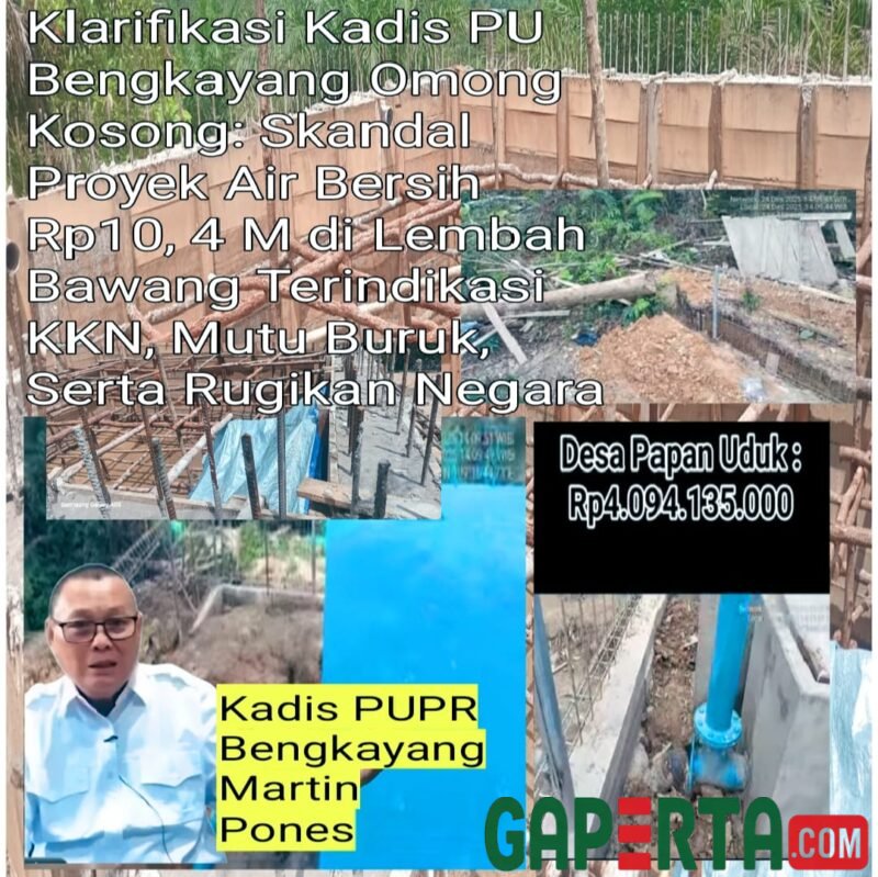Klarifikasi Kadis PUPR Bengkayang Dinilai Omong Kosong Skandal Proyek Air Bersih Rp10,4 Miliar di Lembah Bawang Terindikasi KKN, Mutu Buruk, dan Rugikan Negara