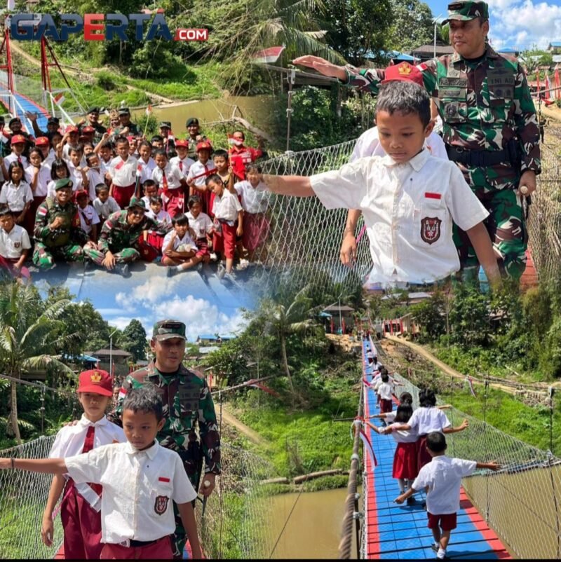 “Jembatan gantung tersebut merupakan hasil pengabdian Kementerian Pertahanan RI, yang dilaksanakan melalui Satgas Pamtas RI–Malaysia Yonarhanud 1 Kostrad, berkolaborasi dengan Vertical Rescue Indonesia.