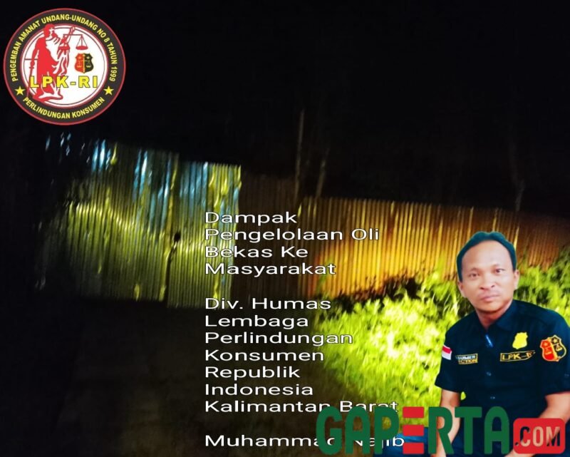 Lembaga Perlindungan Konsumen Republik Indonesia (LPK-RI) Perwakilan Kalimantan Barat menyoroti secara serius dugaan keberadaan gudang penampungan dan pengolahan oli bekas ilegal yang berlokasi di Jalan Kebangkitan Nasional, menuju arah lapangan tembak, Kecamatan Pontianak Utara, Kota Pontianak.
