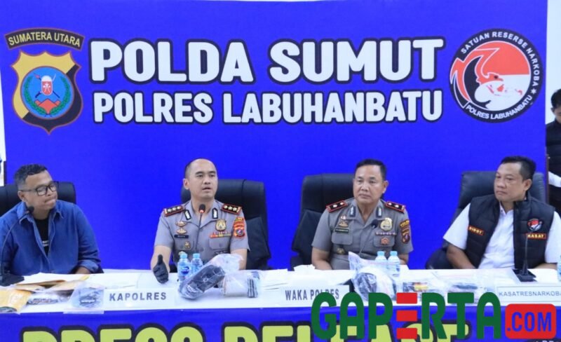 Lqbuhanbatu – Polres Labuhanbatu menggelar konferensi pers hasil pengungkapan tindak pidana periode Januari hingga April 2026. Kegiatan yang dipimpin langsung Kapolres Labuhanbatu, AKBP Wahyu Endrajaya, S.I.K., M.Si, ini berlangsung di Mapolres Labuhanbatu, Gedung Yan Pieter, Jalan Thamrin Rantauprapat, Senin (27/4/2026).