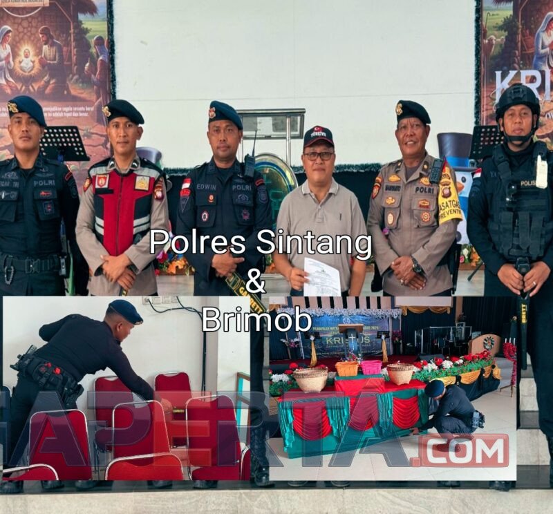 Jelang pelaksanaan ibadah Malam Natal 2025, Polres Sintang bersama Satuan Brimob melaksanakan kegiatan sterilisasi di sejumlah gereja yang berada di wilayah Kabupaten Sintang, Rabu (24/12) Sore.