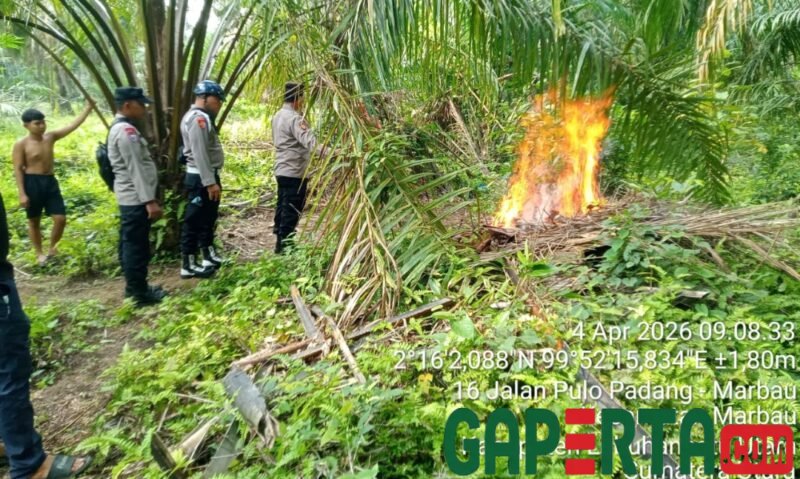 Labura – Polsek Marbau Polres Labuhanbatu bersama warga melaksanakan Gerebek Sarang Narkoba (GSN) di Perladangan warga tepatnya di Dusun IV Desa Belongkut, Kabupaten Labuhanbatu Utara, Sabtu pagi